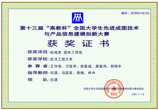 本次竞赛所取得的佳绩也离不开学院对学科竞赛的支持与鼓励,学院历来重视各类学生竞赛,通过以赛促教,提高了本科教学及机械基础课程教学质量的提高,培养了学生的工匠精神,强化了数字化设计与制造技术,探索了图学的发展方向,促进了高校教育教学改革。(审稿 李俊)
