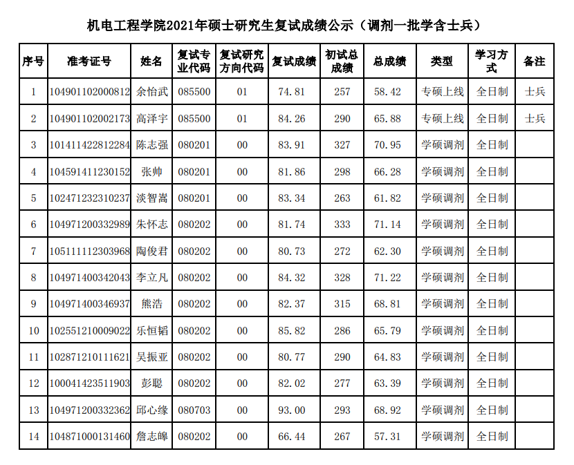 免费看黄色网站2021年硕士研究生复试成绩公示(调剂一批学含士兵)