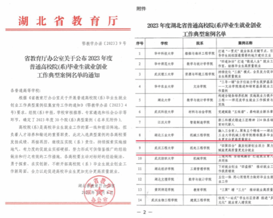 坚持创新引领创业,推进创业带动就业。2023年,学院就业案例入选湖北省高校毕业生就业创业工作典型案例(全校唯一)。