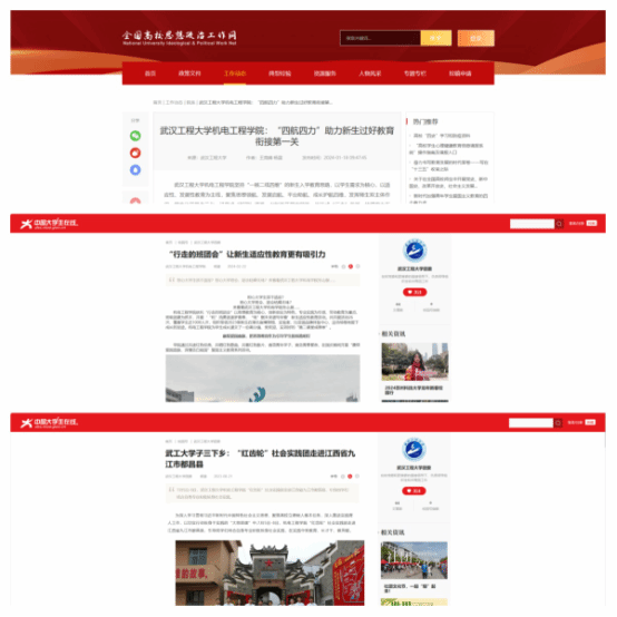 深化品牌建设,激发服务动能。在校团委指导下学院团委成立“‘红齿轮’社会实践团”“红齿轮”志愿科普实践团校级重点团队2个,全院共计60个团队1500余人参与暑期“三下乡”社会实践和大学生“返家乡”社会实践活动,形成文字材料6.5万余字。全国高校思政网、中国大学生在线、湖北日报、荆楚网、极目新闻、都昌县人民政府网站等媒体记录了学院团委在社会实践中6省20县的坚实足迹。学院荣获2023年暑期“三下乡”社会实践活动优秀团队二等奖;研究生李小龙获湖北省2023“三下乡”社会实践先进个人荣誉称号;2023届毕业生宋亚茜、刘鹏飞入选大学生志愿服务“西部计划”。