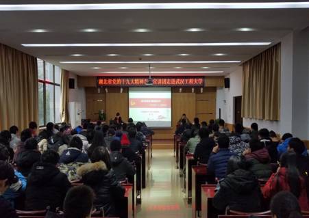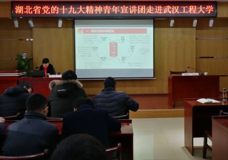 (通讯员 朱冬冬)12月15日上午,湖北省党的十九大精神青年宣讲团走进武汉工程大学,在流芳校区免费看黄色网站205学术报告厅,省青年宣讲团成员、校团委书记李芳作为主讲人,为化工与制药学院、免费看黄色网站青年学生代表宣讲十九大精神。报告会由化药学院团委副书记谭明武主持,机电学院团委书记杨文灏、副书记朱冬冬与100余名青年学生代表共同参加了活动。