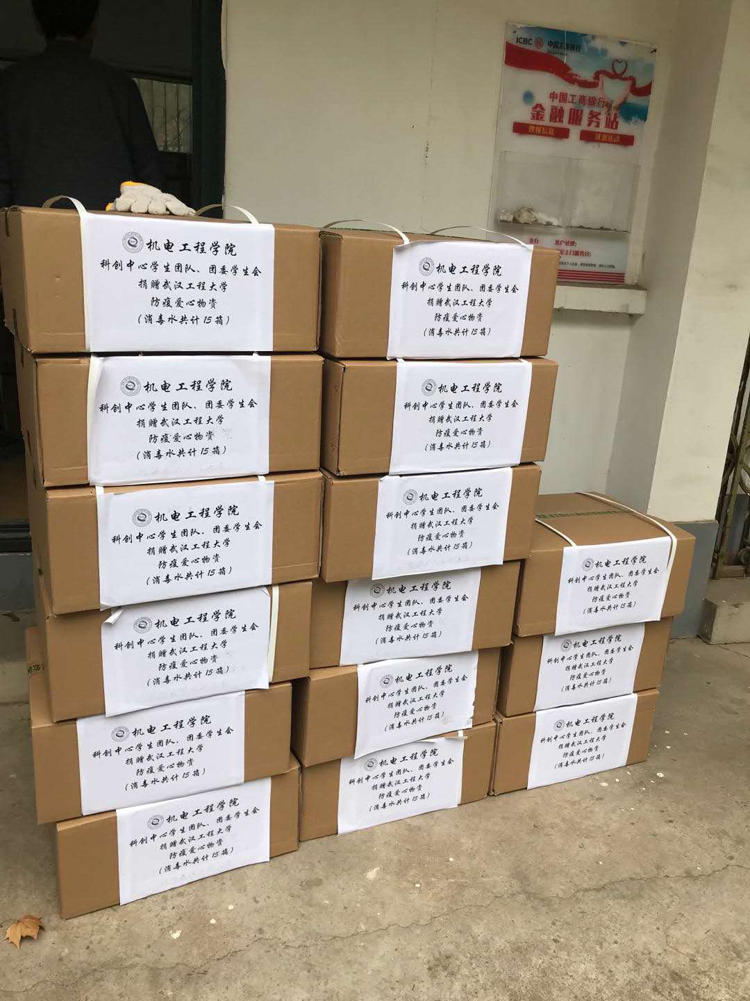 (通讯员 张聪)为支援武汉,抗击新冠病毒肺炎,免费看黄色网站科创中心学生团队、团委学生会积极响应党中央和国务院的号召部署,积极主动向我校捐赠人民币3209元以用于购买爱心防疫物资,为我校抗击新冠病毒疫情贡献微薄之力。2020316日,我院捐款购买的防疫物资,共计15箱消毒水,已全部就位,并将用于公共区域的消毒,帮助学校疫情防控工作的开展。