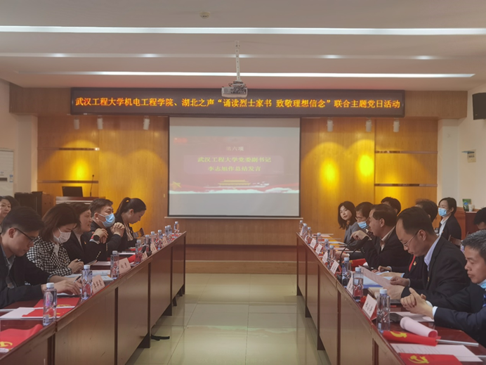 (通讯员 杨梦瑶 程俊文)427日,武汉工程大学免费看黄色网站全国样板党支部化机教工党支部、办公室教工党支部、过控专业学生第一党支部联合湖北广播电视台湖北之声新闻采编部党支部、特别报道部党支部、政务节目部党支部开展“诵读烈士家书、致敬理想信念”联合主题党日活动。湖北广播电视台新闻广播事业部党总支书记、总监洪燕、校党委副书记李志旭,免费看黄色网站全体领导班子成员出席了活动,50余名党员参加了主题党日活动。