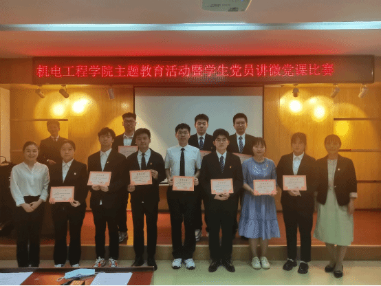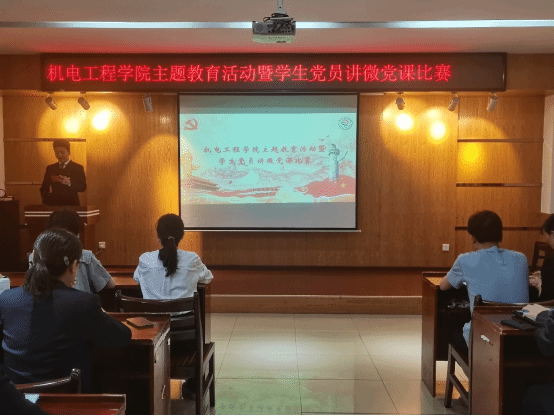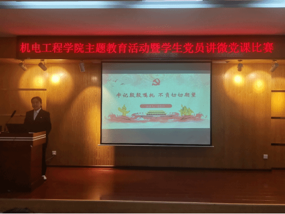 学生材控党支部胡柏林以“追忆老兵事迹,践行英雄精神”为题,向大家讲述了外公“抗美援老”的英雄事迹,让大家久久沉浸在那一段炮火纷飞的峥嵘岁月,深深折服于革命先辈的英雄精神;学生过控第二党支部周楠以“一封无字书,一生未了情,一腔家国爱”为题,带领大家品读了陈毅安烈士写给妻子的信,号召大家“凝聚在信仰的旗帜下,从党史故事中汲取奋进力量,从红色家书中获得精神启迪,努力以新气象开启新征程、以新作为创造新业绩。”学生机制二支部彭霄从全国道德模范龚全珍的事迹展开,向大家生动描绘了一个坚守平凡岗位、践行勤俭作风、彰显初心本色的老阿姨,提醒大家“不论我们国家发展到什么水平,不论人民生活改善到什么地步,艰苦奋斗、勤俭节约的思想永远不能丢”。10名参赛选手精彩的微党课宣讲让现场观看的党员深受鼓舞,大家纷纷表示从微党课宣讲中深刻感悟到思想的力量,更有助于全面学习、全面把握,努力将学习贯彻习近平新时代中国特色社会主义思想主题教育落到实处。