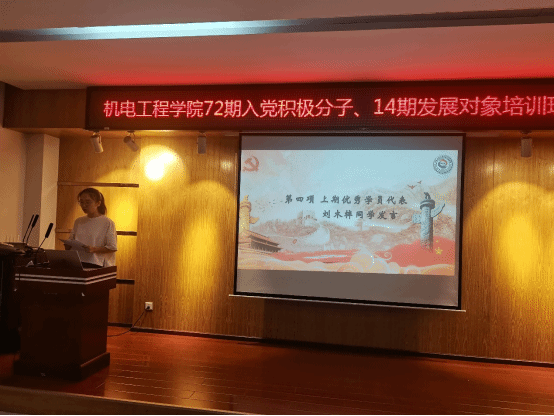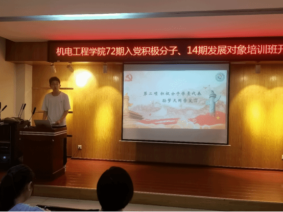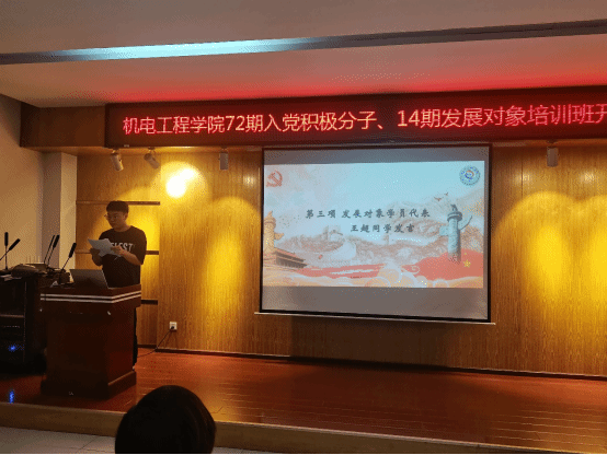典礼上,第72期积极分子培训班学员代表孙梦天、第14期发展对象培训班学员代表王超、第71期积极分子培训班优秀学员代表刘木梓分别做了交流发言。