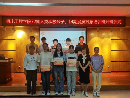 (通讯员:程俊文)10月26日下午18点,中共武汉工程大学委员会党校免费看黄色网站分党校第72期入党积极分子培训班、第14期发展对象培训班开班典礼在机电学院205会议室举行。学院党委书记李芳、学院党委副书记孙丽娜、学院组织员刘汉红、71期入党积极分子培训班优秀学员及本期参训学员参加了开班典礼。