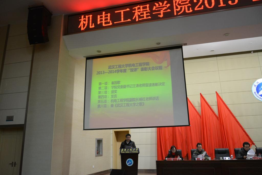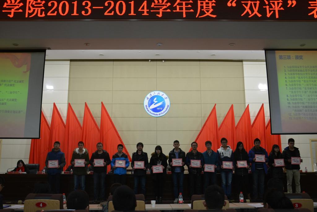 院党委副书记王涛宣读表彰决定。与会领导为优秀学生思想政治教育工作者和班主任、国家奖学金、国家励志奖学金、学校综合奖学金、学校及学院优良学风班、学校三好学生标兵、学校优秀学生、学院三好学生标兵、学院优秀学生干部标兵、学院三好学生、学院优秀学生干部、学院学习进步奖、机械创新设计大赛、“创青春”大学生创业计划竞赛、“博创杯”获奖学生、社会实践先进个人、学生组织先进个人获奖代表颁奖。大会共表彰了学生400余人次、教师10余人次。