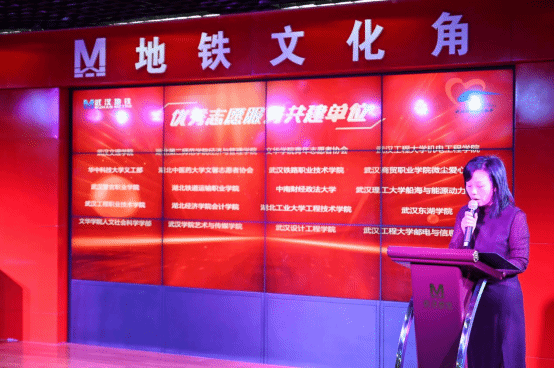 (通讯员 万浩天 方青松)12月5日,在第38个“国际志愿者”日来临之际,武汉地铁在洪山广场站地铁文化角举行“地铁志愿服务织就城市文明幸福路”2023年度优秀志愿服务集体及个人表彰活动,我院“红齿轮”青年志愿者服务团队荣获“优秀共建单位”,2021级本科生、“红齿轮”青年志愿队主要负责人冯默荣获“优秀志愿者”荣誉称号。“红齿轮”青年志愿者服务团队负责人代表陈熹参与颁奖仪式并领奖。