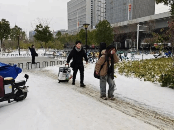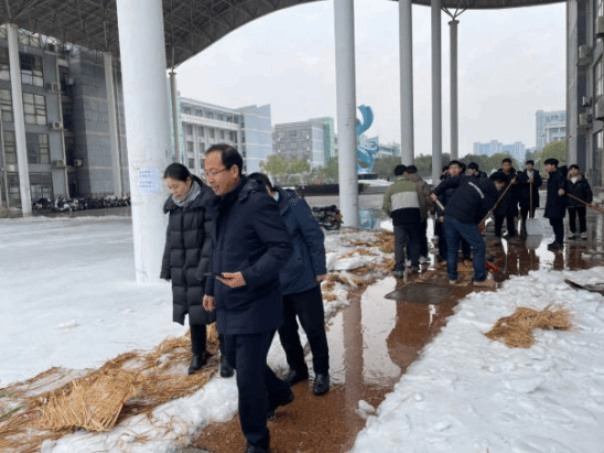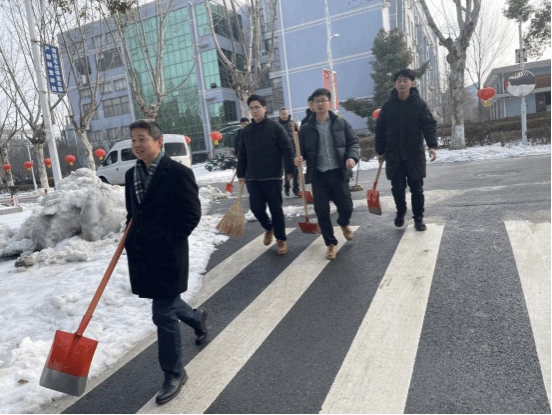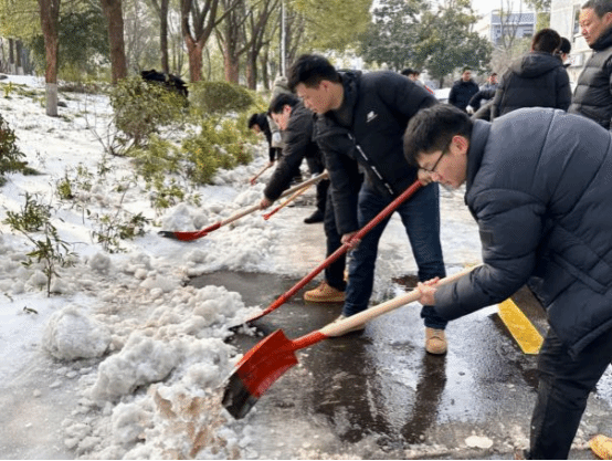 全力出击,共筑“安全暖心返校之路”面对大雪冰冻天气,出行不便,学院领导、党员教师齐上阵,手拿铲雪工具,相互配合、齐心协力、分工有序、配合默契,有条不紊地清理道路两边积雪。以“雪”为令,以动制“冻”,经过不懈努力,积雪被清扫干净,用实际行动践行服务师生的宗旨,为返校学生清扫出一条“平安路”“温暖路”。