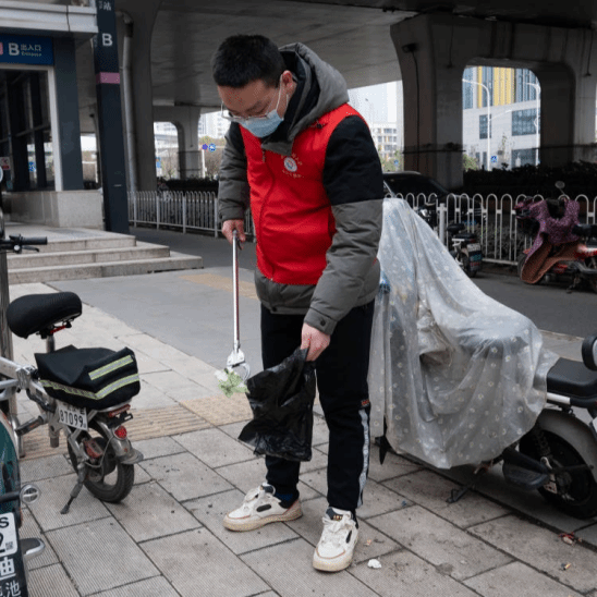 在地铁站的各出口处,鲜亮的“小齿轮”深入到各个角落,他们分工协作,认真清理路面及绿化带的垃圾和杂物,保持路面整洁、保障道路畅通,在全体志愿者们的共同努力下,共同营造了良好有序的乘车环境,擦亮了城市文明的窗口。
