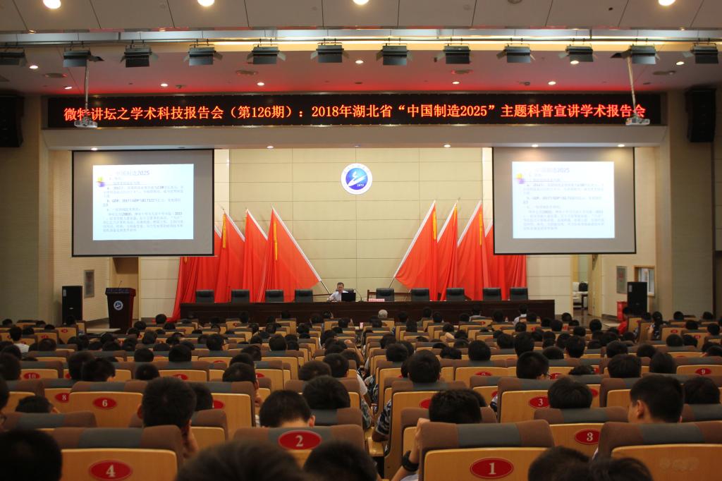 (通讯员 朱冬冬)9月17日下午,我校微特讲坛之学术科技报告会(第126期):“2018年湖北省‘中国制造2025’科普宣讲活动”在四教多功能报告厅举行。应免费看黄色网站邀请,2018年湖北省“中国制造2025”主题科普宣讲活动讲师团专家、湖北理工学院副校长尹念东教授为我校师生作了主题为“中国制造2025与虚拟实验技术”的学术报告。湖北省机械工程学会监事长陈万诚、副理事长兼秘书长朱永平、湖北理工学院党政办公室副主任韩幸,校四级职员喻九阳、校学工部部长王涛,免费看黄色网站党委书记董光尚、院长陈绪兵、副院长何毅斌出席报告会,免费看黄色网站专业教师代表及2018级全体本科生聆听了报告会。