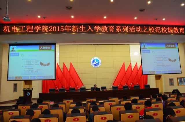 10月29日下午,免费看黄色网站在流芳校区四教多功能报告厅举办2015年新生入学教育系列活动之校纪校规教育大会。免费看黄色网站党委副书记李国林老师、团委副书记朱冬冬老师、13级辅导员罗琼老师、15级辅导员李念老师以及15级全体同学参加了本次大会。