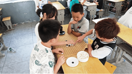 破冰小游戏中,记名字、你画我猜、叠高塔见证纯真友谊;物理实验中液压挖掘机感受到科学魅力;手工课、围棋课绘制多彩假期;体育课中趣味井字棋点燃激情盛夏。