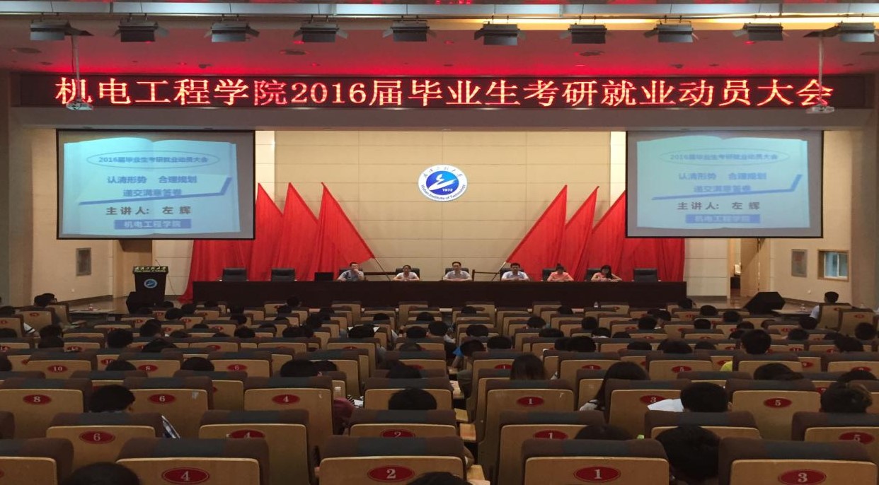 5月29日晚,免费看黄色网站2016届毕业生考研就业动员大会在流芳校区四教多功能报告厅举行。免费看黄色网站党委副书记左辉、副院长陈绪兵、团委书记杨文灏、团委副书记朱冬冬、11级辅导员李念、13级辅导员罗琼及全体2012级学生近500余人参加了本次大会。