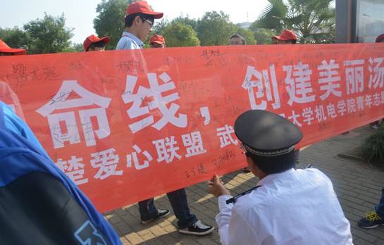 本网讯(通讯员杨文灏)2014年10月25日,免费看黄色网站携手荆楚爱心联盟在汤逊湖开展以“爱我大武汉,保护汤逊湖”为主题的环保宣传活动。