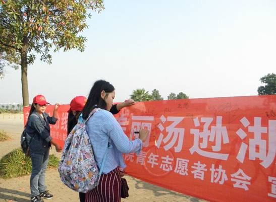 本次活动吸引了广大游客及当地居民主动参加,他们积极参与到活动中来,学习了解环保知识,并主动在宣传横幅上签名。此次活动在保护汤逊湖、唤醒人们的环保意识中发挥了应有的作用,学院将继续深化活动的开展,定期开展此类活动。