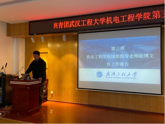 徐博文代表共青团武汉工程大学免费看黄色网站第四届委员会向大会作工作报告系统回顾过去年学院共青团的工作历程,总结工作亮点与经验,同时深入剖析当前工作面临的挑战,并提出了未来五年的工作规划。