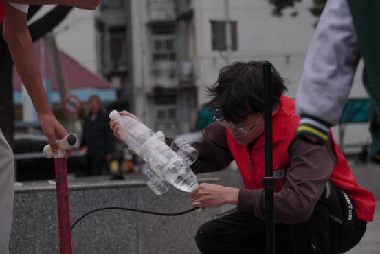 理论与实践的结合,是科学探索的核心。在志愿者们的指导下,孩子们动手参与了水火箭的制作过程。从剪裁到组装,每一个步骤都凝聚着志愿者们和孩子们的专注和努力。他们小心翼翼地将水注入火箭,期待着那激动人心的一刻。