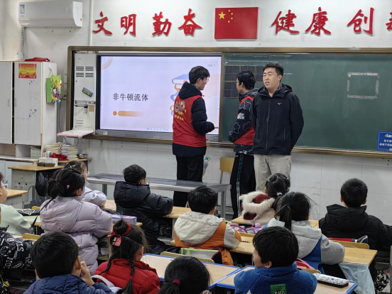 “非牛顿液体真奇妙,轻轻触碰如水流,用力搅拌却变硬,好像会变小魔术!”“红齿轮”志愿服务团带领小朋友们用日常生活中的淀粉和水进行了非牛顿液体实验。在实验中,小朋友们亲眼见证了淀粉加水后的混合物在快速搅拌下变得坚硬如石,而缓慢搅拌时又如水一般流动这一神奇的现象小朋友们纷纷跃跃欲试,亲自动手体验科技的乐趣。