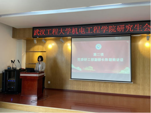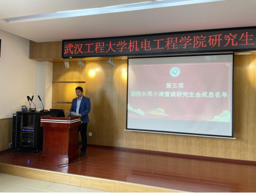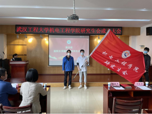 会议中,副院长郑小涛宣读了机电学院第一届研究生会成员名单;副院长何毅斌为第一届研究生会授旗。