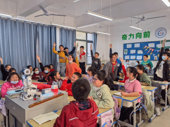 在提问和互动环节,现场的学生纷纷举手发言,畅所欲言、表达观点、提出问题,小朋友们在轻松愉悦的氛围下感受机器人带来的无穷魅力。