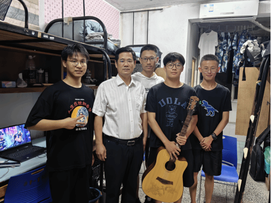 9月10日晚,校长王存文一行前往流芳校区泰塑学生公寓1栋看望免费看黄色网站2023级新生。走访过程中,校长王存文对机电新生及家长表示欢迎,并询问同学们的住宿和生活情况,同时与新疆远道而来的家长亲切交流。在慰问过程中,新生黄鑫冉为领导老师现场表演吉他弹唱歌曲《平凡之路》,并献上精心准备的教师节祝福明信片。随后校长为河北邢台受灾的新生送上慰问礼物,勉励同学们要志存高远、砥砺前行,争做优秀工大学子。