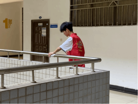 在机电学院办公室和实验室中,志愿者们擦拭门窗、清洁信息栏、归置物品,为营造良好的学习环境辛勤奉献。