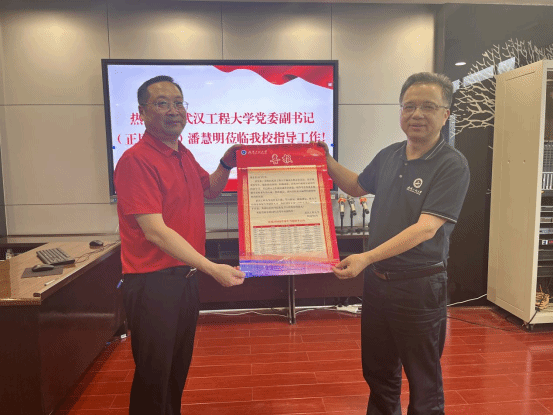 在潜江中学,招生宣传组成员与潜江市教育局副局长鲁明,潜江招生考试院副院长袁书勤,潜江中学党委书记魏敦波,高三年级主任、全体班主任等进行了座谈交流。潘慧明首先感谢潜江中学长期以来对我校招生宣传工作的大力支持,接着详细介绍了学校的办学特色、专业设置、毕业生就业质量等情况,他表示,两校既有良好的合作基础,又有广阔的合作空间,希望双方形成长效合作机制,共同培育优秀学子,携手提升人才培养质量。潜江市教育局副局长鲁明,潜江中学党委书记魏敦波对我校招生宣传组一行的到来表示热烈欢迎,与会领导及老师一致表示,通过此次交流对我校的办学优势及特色有了更加深入的了解,将会加大宣传力度,向我校输送更多的优质生源。双方就武汉工程大学招生政策、学生就业前景等进行了深入交流。