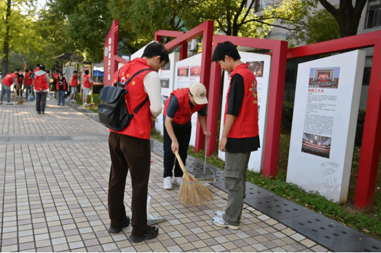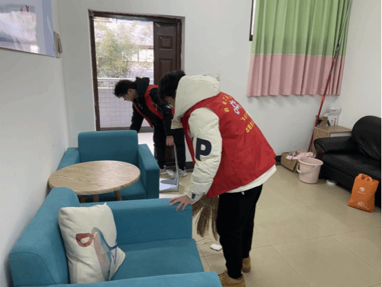 在维特思源广场上,志愿者们热情洋溢、干劲十足,清扫垃圾、清除落叶、捡拾杂物、清理展板,精准务实的完成清洁工作;在学院办公室和实验室中,志愿者们擦拭门窗、清洁信息栏、归置物品,为营造良好的学习环境辛勤奉献;在心理健康工作室中志愿者们清理垃圾、规制物品、精心布局,一同建设温馨舒服的“心灵家园”。