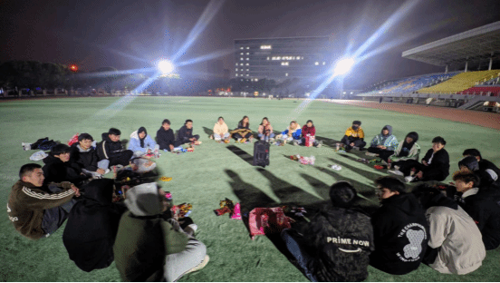 “开学这么久,我们还没有一起坐坐,聊聊天呢”过程装备与控制工程和机械电子工程专业的同学们相约来到流芳校区运动场进行露天茶话会,伴着夜幕的胧月,他们谈着军训时的汗水和笑容,他们击鼓传花的方式记住每一个同学的名字,也以“如何实现科创梦”为话题憧憬着大学四年的精彩人生。