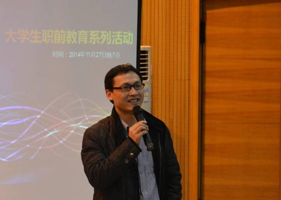 联想移动通讯武汉公司质量工程主管向军为大家带来大学生职业规划讲座。向军老师从企业的角度出发,为学生传授如何选择自己的职业和大学生应该如何学习等一系列实用的知识和信息。