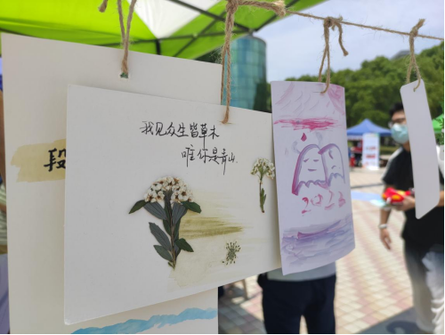 参与同学都被分有一张空白书签,桌子上放有不同的绘画工具,供同学们自由选择。同学发挥自己的想象力和艺术才能,运用绘画、粘花、书法等不同的形式,围绕着梦想、友谊、生活愿景、美好时刻等等主题独立创作设计出一张张各具特色的心理书签,表达了自己的想法。
