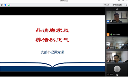 全国样板党支部、化机党支部书记杨红同志就党风廉政建设宣传教育月活动,结合自身体会,以“品清廉家风,养浩然正气”为题,为大家上了一次微党课。杨红同志首先剖析了家风的概念,接着带领大家回顾品评了历史上的清廉家风。结合自身实际,重点介绍了“老实做人,踏实做事”的自家家风。从家风引申到师德师风,带领大家学习了高校教师的廉政操守,包括师德禁行行为“红七条”、新时代高校教师职业行为十项准则以及严禁教师违规收受学生及家长礼金行为的6条“红线”等。