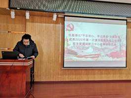 会上,学院党委书记李芳带领全体与会党员学习了“十九届五中全会公报要点”,李书记分别从“十三五”期间取得的主要成就、我国发展环境面临的复杂变化、到2035年要实现的远景目标、“十四五”期间经济社会发展的主要目标、实现奋斗目标的具体措施等方面,开展了全方位的解读,深入传达了会议精神,李芳书记说道:我们要认真学习十九届五中全会精神,充分认识十九届五中全会的深刻意义,把握历史方向和发展大势,不断增强政治定力和战略定力,对照习近平总书记关于年轻干部需要提高的“七种能力”要求,努力提高为人民服务的能力,做一名想干事、能干事、干成事的党员干部,做一名让党和人民放心的党员干部。随后,党委书记李芳带领全体党员进行了“四史”的学习,促使党员把握“四史”的出发点和落脚点,提升了党员的党性修养和思想觉悟。