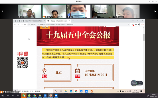 全国样板党支部、化机教工党支部书记杨红同志的带领支部集体学习了中国共产党第十九届五中全会精神,内容包括《中国共产党第十九届中央委员会第五次全体会议公报》和《中共中央关于制定国民经济和社会发展第十四个五年规划和二〇三五年远景目标的建议》。十九届五中全会于2020年10月26日至29日召开,会议审议通过了《中共中央关于制定国民经济和社会发展第十四个五年规划和二〇三五年远景目标的建议》这个重磅文件,充分肯定了十九届四中全会以来的工作,高度评价了“十三五”成就,制定了二O三五年社会主义现代化远景目标和“十四五”时期经济社会发展主要目标,并提出了若干重要原则。
