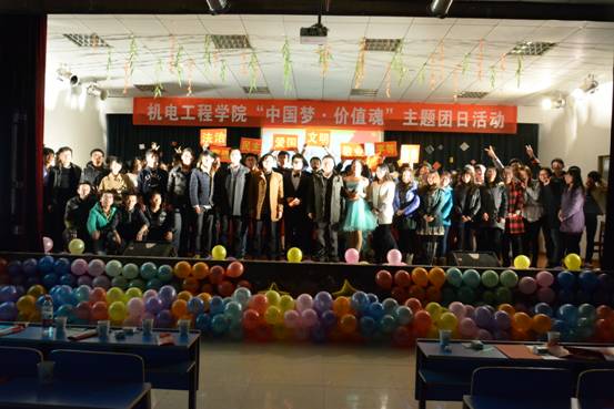 整个活动精彩纷呈、高潮不断,展现了机电学院团员青年对共青团的拥戴与机电学子们的青春活力,赢得了各级领导老师的交口称赞。晚会结束后,各领导老师与各学生干部,演出人员合影留念。