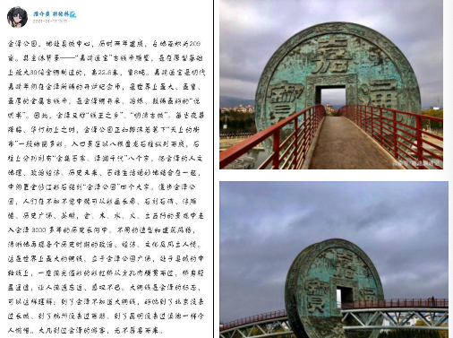 论行至多远,唯有家乡才是最温暖的归宿。参与推介类的胡柏林将家乡的景点配上精美的文案网上进行宣传,成为家乡的代言人。让更多的人能领略自己家乡的秀丽风景,体验它的人文情怀。