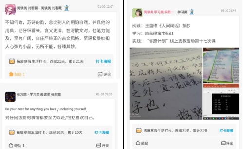 同时,学院微信公众号也及时报道同学们的活动开展和打卡情况,并对部分表现优秀的同学进行跟踪报道,以此来激励更多的同学积极参与进来。