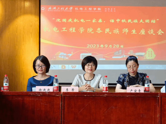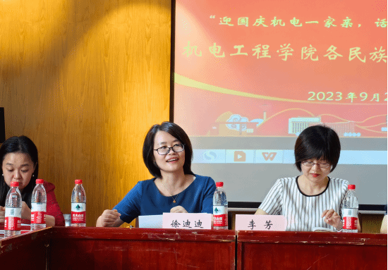 机电学院党委书记李芳代表学院向学校各部门长期以来对于学院工作的大力支持表示感谢,同时也感谢求学在此的各民族同学对学校、学院的充分的信任,她指出,各民族同学,犹如不同的花朵,有各自的特色和光芒,希望同学们既要志存高远,又要脚踏实地,在工大这片沃土努力生根发芽,不断茁壮成长。最后,在中秋节和国庆节来临之际,她祝愿同学们老师们节日快乐,祝愿国家繁荣富强。