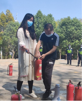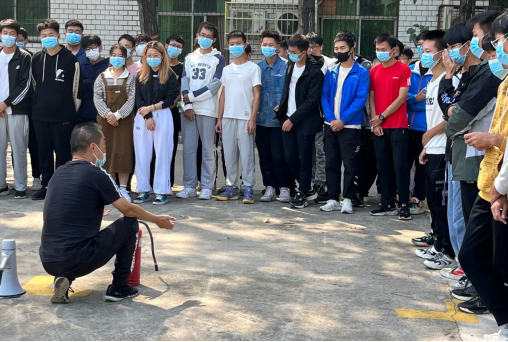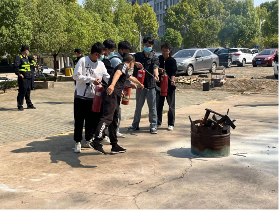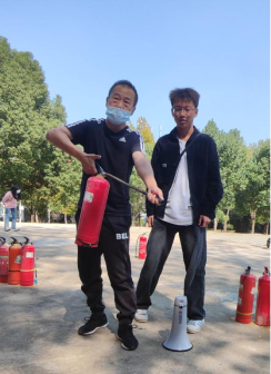 最后,王子龙老师指导学生们进行了灭火实践,结合学生们对灭火实践操作进行了更为细致的指导纠正,让学生更好的掌握干粉灭火器的正确使用方法。