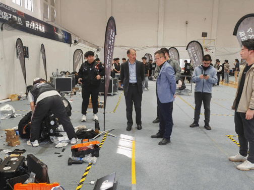开幕式当日,校党委常委、副校长喻发全亲自检查赛场区和备赛区的准备情况,并与参赛队伍亲切交流,他介绍了学校在机器人领域取得的成绩,强调了机器人技术在科技跨越发展、产业优化升级、生产力整体跃升方面的重要性。他指出,随着信息化、工业化的不断融合,以机器人科技为代表的人工智能产业已经成为最耀眼的“科技明星”,随着“人工智能+”政策的全面铺开,中国正迎来智能化高质量发展的崭新时代,同时鼓励参赛学子们要敢于创新、勇于挑战,不断突破自我、追求卓越,并期待各参赛队伍在武汉工程大学大学取得优异的成绩。