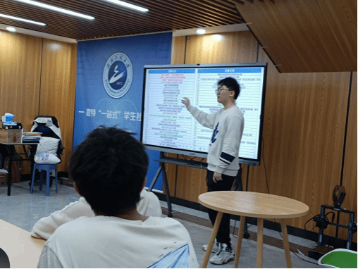 “参与科创竞赛不仅要有扎实的专业知识,更要有办公、设计、算法、电路设计等必备基本技能。”活动伊始,特邀嘉宾2022级机制03班顿魏星同学对自己的学科竞赛经历进行分享,将科创竞赛的经验系统地分为赛事选择、具体赛事举例分析、参赛项目来源和工作内容、路演和答辩要点四个大方面,为在场的同学们呈现了一幅完整的科创竞赛流程图。他对A类赛事进行了针对性的分析,结合本院学生专业涉猎的范围,为大家梳理出了相关可参与的高质量赛事。