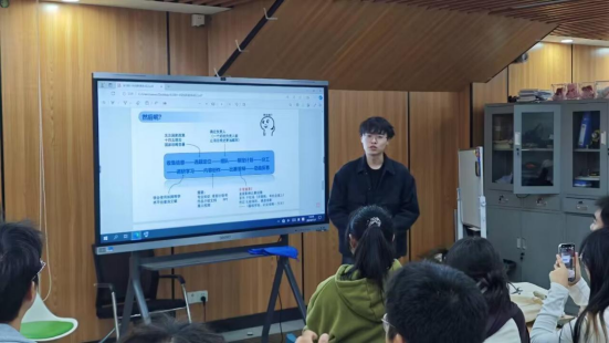 面对同学们关于赛事内容和获取培训途径的疑惑,段凯锋详细解析了各竞赛的核心要点与评判标准,同时介绍了自己参加的专业培训以及使用的在线资源,帮助同学们更加清晰地了解科创赛事入门方法及参赛技巧,使同学们深切体会到科创赛事所蕴含的独特魅力。