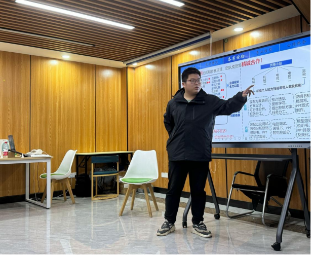 本次活动荣幸邀请到了2021级机械电子工程专业的程开甲同学作为主讲嘉宾。凭借丰富的竞赛经历,为同学们深入剖析了不同阶段的竞赛准备要点,细致入微地讲解了如何高效备赛,特别强调了团队合作与脚踏实地精神的重要性。他分享道,在机械设计过程中,积累经验至关重要,而在实物制作环节,则需细致观察,精益求精。同时,他特别提醒同学们,在备赛过程每一步都需谨慎,因为“一步错,步步错”,唯有持之以恒,方能取得最终的成功。