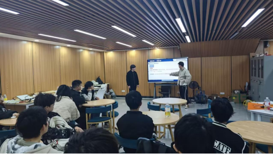 本次活动邀请2023级材料成型及控制工程专业金昊同学和2023级机械工程专业杨育成同学共同主讲。他们基于自身丰富的备赛与参赛经历,为在场的同学们带来了一场深度而全面的竞赛经验分享。金昊与杨育成同学细致入微地剖析了各自参与的学科竞赛,详细讲解了报名准备、团队组建、项目构思到具体实施、作品提交等各个环节。