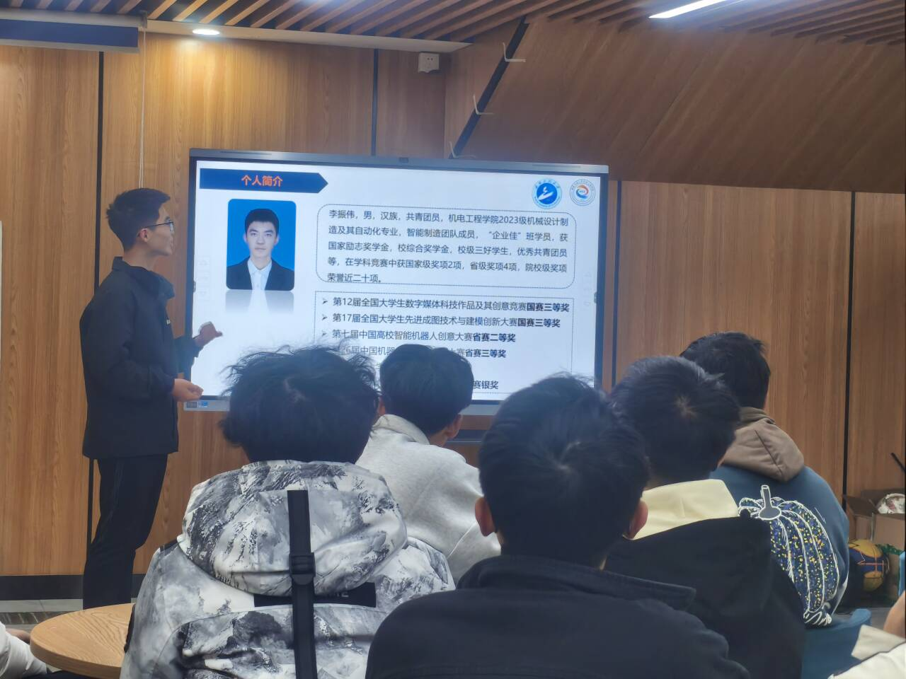 本次活动邀请2023级机械设计制造及其自动化专业的李振伟同学2023级过程装备与控制工程专业的禹思杰同学作为主讲嘉宾。2位主讲人详细分析了各自专业相关的学科竞赛,并结合自身经历具体讲解竞赛的参赛流程赛技巧以及比赛心得重点强调了提前做好竞赛准备的重要性。他们勉励学弟学妹们要做好提前规划、未雨绸缪珍惜韶华、不负光阴。