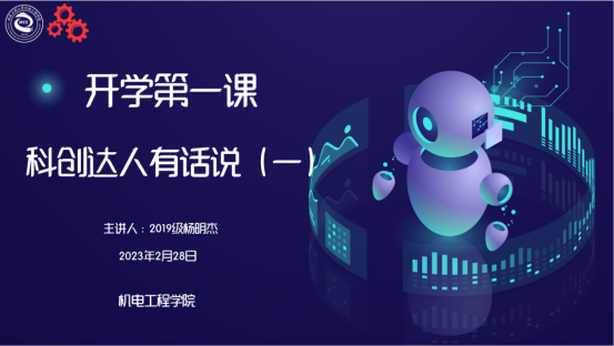 本次活动邀请学院“互联网+”国家级金奖团队成员、校第二届“最美大学生”获得者2019级学生杨明杰做科创经验分享。