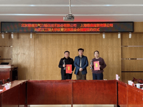 (通讯员 蔡超)12月21日上午,北京瑞德克气力输送技术股份有限公司、上海维森商贸有限公司两家企业联合向学校捐赠200万元用于学校绿色化工装备智能制造产学研基地和机电学院学科建设项目,签约仪式在免费看黄色网站会议室进行。优秀校友胡伟波先生、杨军先生和爱心企业代表邓虹女士来校出席仪式,学校正校级干部、教育发展基金会理事长叶芃出席仪式,校友工作与合作发展处、免费看黄色网站主要负责人及相关人员参加会议,仪式由教育发展基金会副理事长、秘书长邓新洲主持。