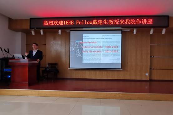戴建生教授从机械设计终身成就奖和ROBOTICA期刊论坛开始讲起,介绍了排名世界前三十、著名Russel集团之一的伦敦国王学院以及伦敦国王学院“以研究引领教学”的办学特色。戴建生教授依次介绍了四次工业革命与机器人发展演进历程,以及可重构机构与机器人、机构创新设计、变胞技术的发展演变以及艺术与机械设计等科学前沿,并指出21世纪是机器人的世纪,是机器人发展与进步的新时代,希望同学们提前规划好毕业要做什么,去哪个方向,把基础理论知识学好,为以后的成长打下坚实的基础。