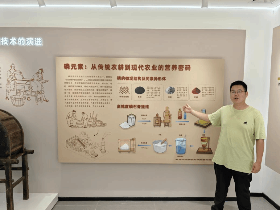 在磷矿科普展区,实践团成员精心制作了《磷元素:从传统农耕到现代农业的营养密码》科普展板,系统阐述了磷元素在农业生产中的关键作用及其从传统“草木灰施肥”到现代“精准营养调控”的科技发展历程。为了帮助参观者更直观地理解复杂的磷矿加工工艺,实践团成员发挥专业特长,利用3D打印技术制作了磷石灰煅烧塔的精细模型,将抽象的工业流程变得触手可及,极大地提升了科普效果。